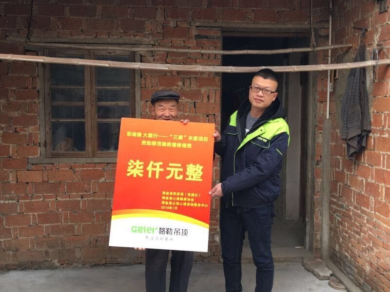 格勒集成吊顶为困难老人免费安装暖心吊顶