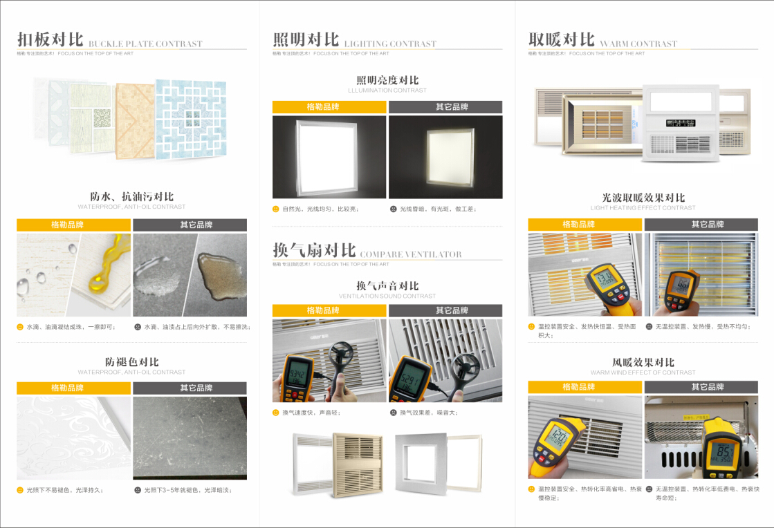 格勒集成吊顶通过不断的自我研发和国外引进,目前在产品质量方面处于行业领先地位。谁是了“李逵”谁是“李鬼”我们比比就知道!