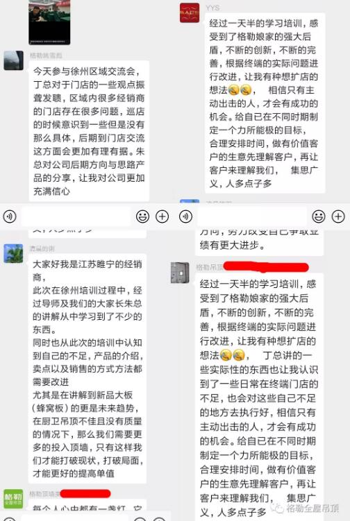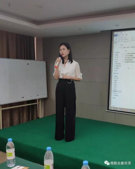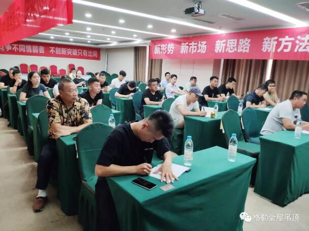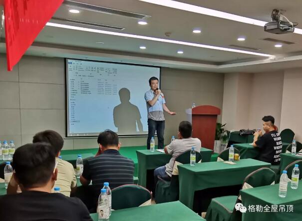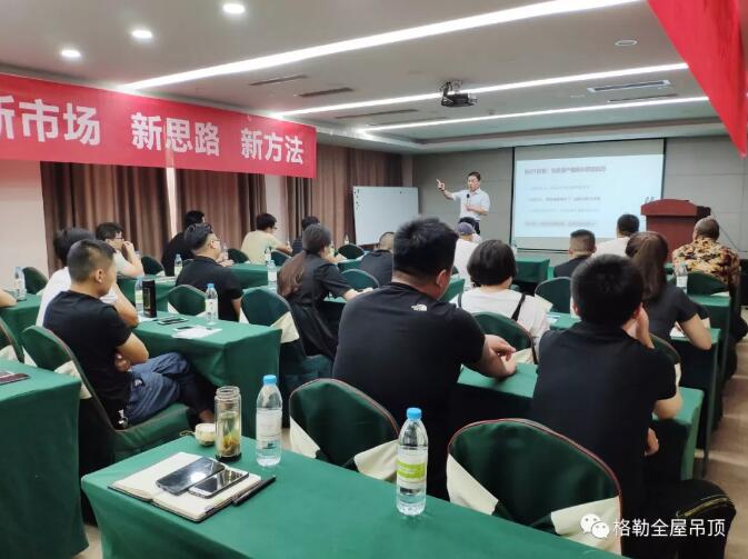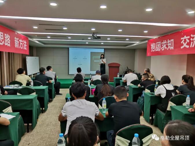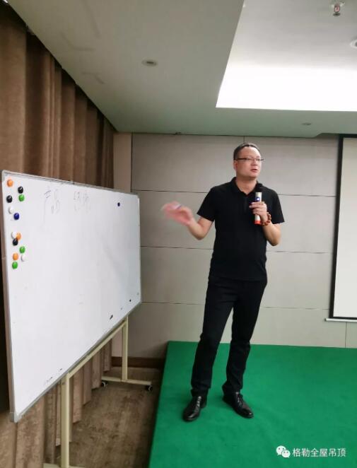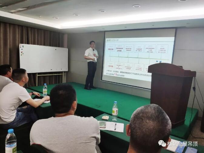 "我们唯有加速奔跑,才能存活在这个时代。"翌日,格勒吊顶营销战略合作伙伴目思营销丁总,以“顶墙行业实战培训”、“经销商交流机制”为主题通报,在品牌建设、宣传推广、渠道建设、店面展示、建立制度、规范终端等问题做了强化培训。其深厚的实战经验及出彩的解说让在场家人茅塞顿开。