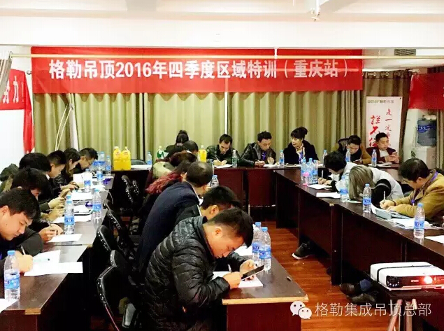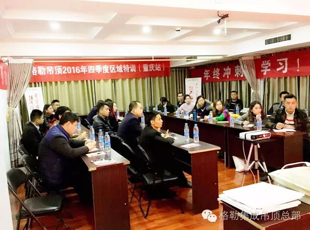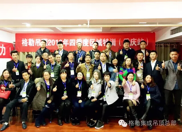 就在全国喜迎一年一度的11.11的时候,格勒集成吊顶却在来和你相遇的路上。继北京,太原站后,11月9号,格勒吊顶“好店面、新终端”推进会暨四季度区域特训会第三站在美丽的山城重庆开启,公司营销总监京总、活动组长张总和区域经理亲临活动现场,与格勒家人相聚一堂,共同探讨学习产品知识、分享销售经验及制定战略目标。