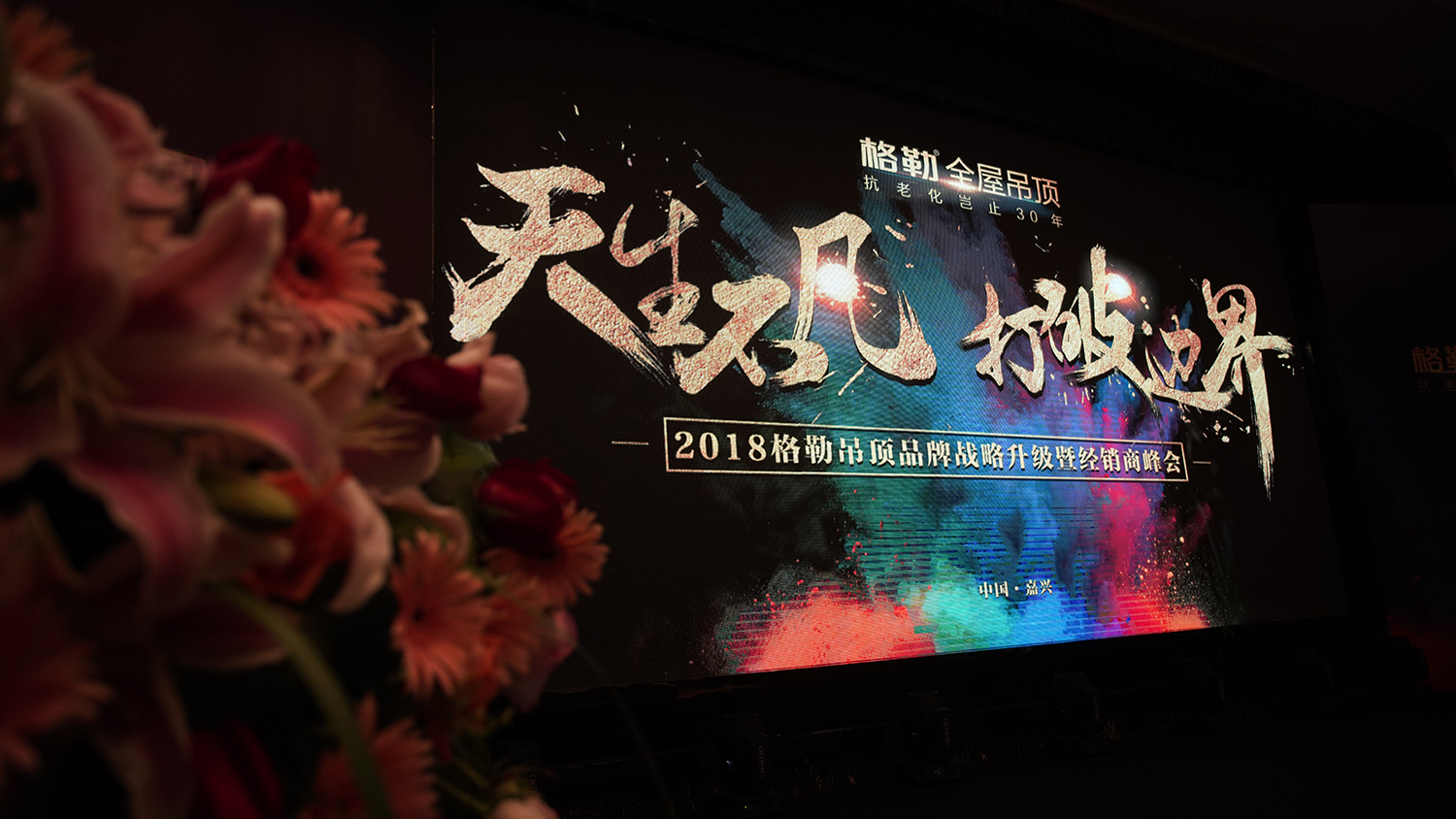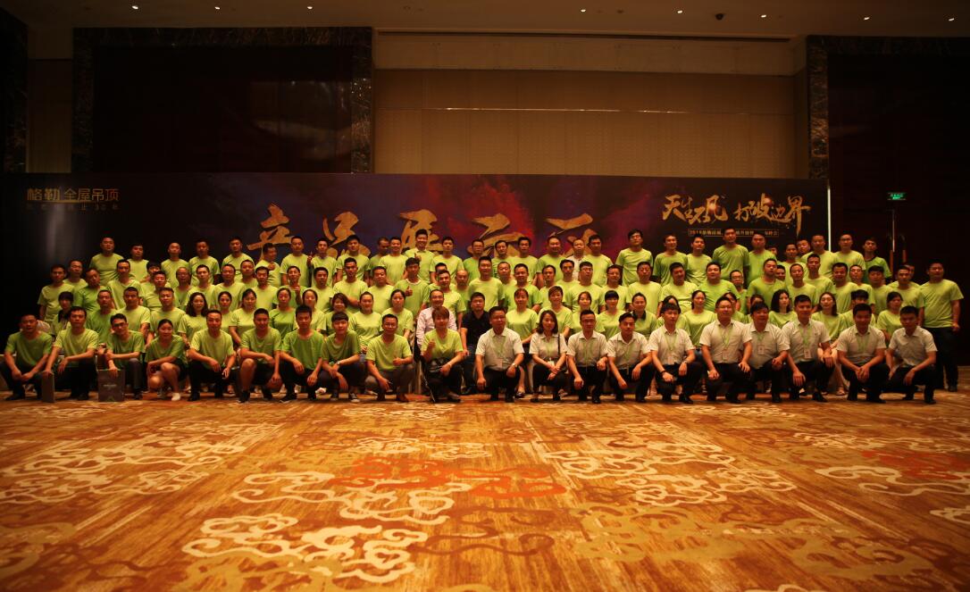在全体经销商家人的见证下,各位领导上台进行启动仪式,2018格勒吊顶品牌战略升级正式启动,开启了全新的品牌战略。