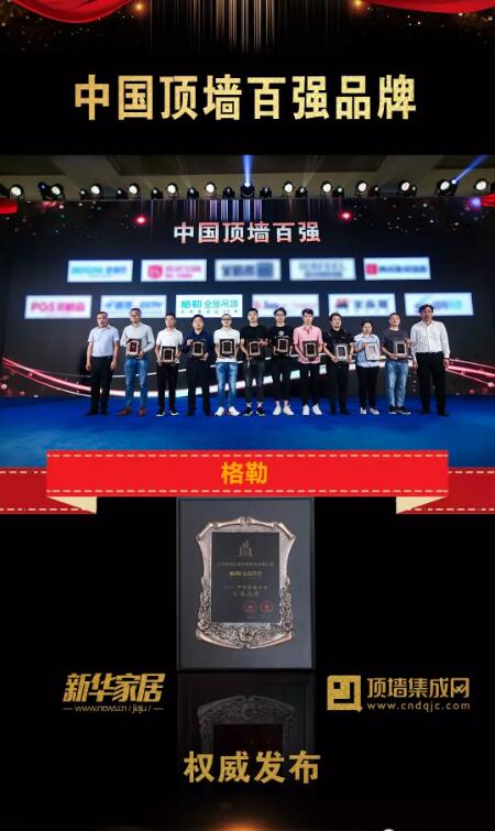 捷报频传!恭喜格勒吊顶荣获2019中国顶墙企业百强品牌!