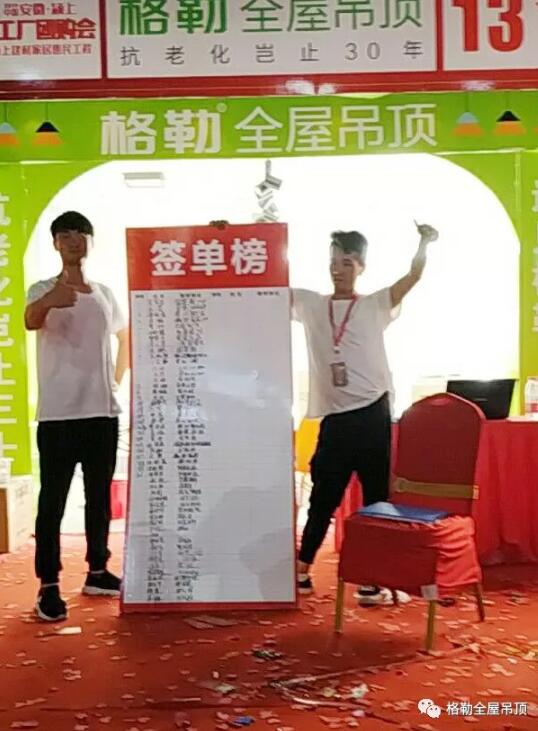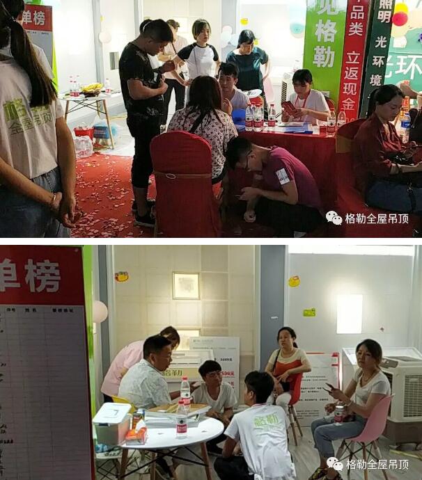 款式新颖,时尚环保,个性化量身定制,现场福利满满,格勒吊顶产品得到业主们的肯定并纷纷下单,把气氛推向了高潮。活动当天生意十分火爆,现场成交100+单。火爆人气、高单值、高成交率再一次印证了格勒吊顶的市场知名度和好口碑,格勒速度,势不可挡!