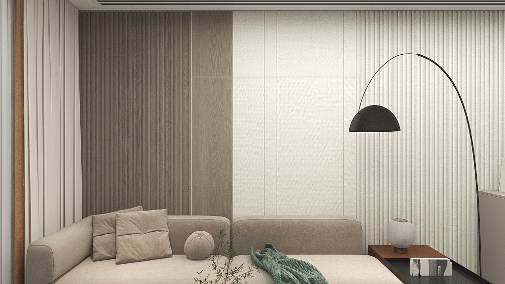 客厅是招待客人的地方,客厅背景墙的设计非常重要。客厅电视背景墙、沙发背景墙可以装格勒硅藻纤维墙板,搭配格栅或是金属线条,设计简单又时尚。